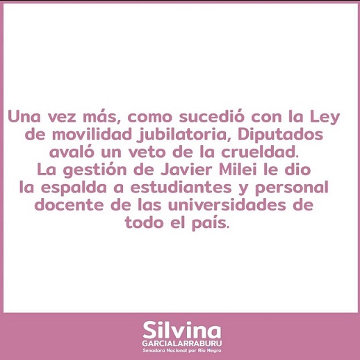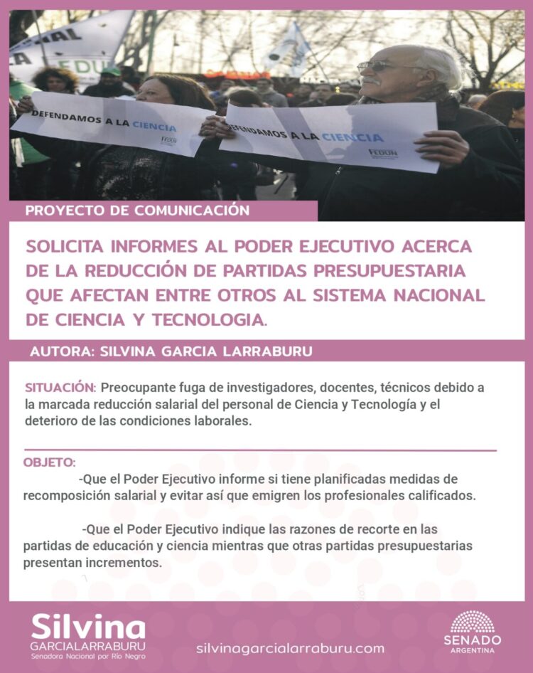 La Senadora Silvina García Larraburu está totalmente en contra del plan de acción de desmantelamiento que el Poder Ejecutivo Nacional está llevando adelante en el Instituto Nacional de Tecnología Agropecuaria (INTA), el cual incluye la reducción de su personal y de su presupuesto; como así también la venta de su patrimonio y el redireccionamiento de…