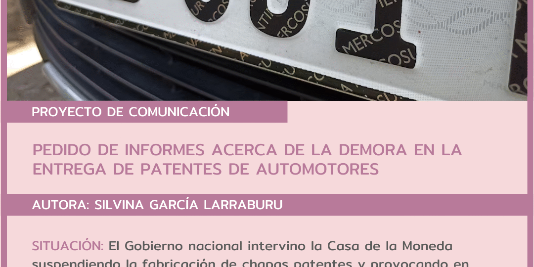 La senadora nacional Silvina García Larraburu presentó un proyecto de comunicación solicitando al Poder Ejecutivo informes precisos sobre la crisis en la producción y entrega de chapas patentes del automotor.