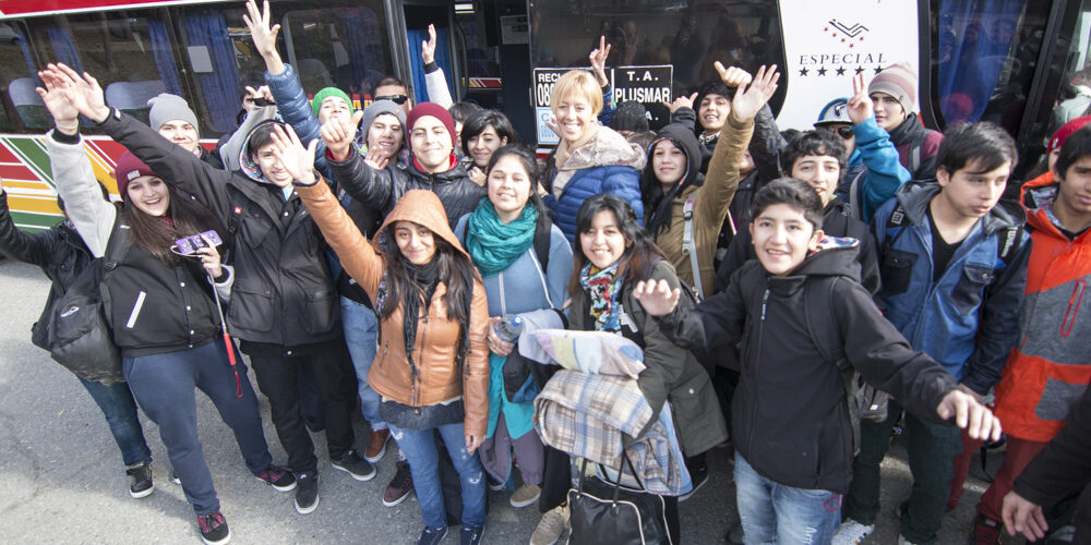 Brisa estaba con su grupo de compañeros, todos con banderas y colorida indumentaria “este es nuestro viaje de estudios, cuando nos confirmaron que viajábamos fue enorme la alegría y los festejos en el aula, ahora ya estamos listos para disfrutar todos juntos”.